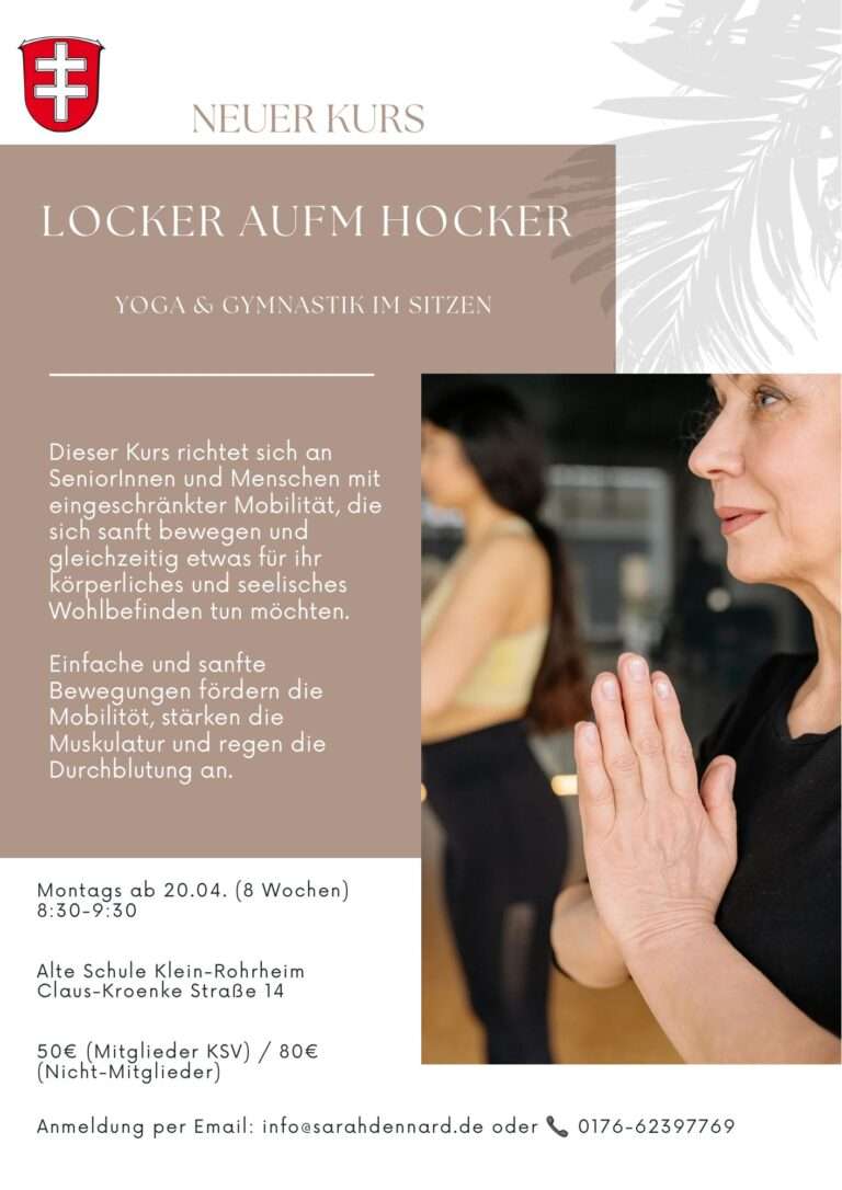 Jeden Dienstag um 18:30 Uhr Yoga in Klein-Rohrheim Alte Schule.